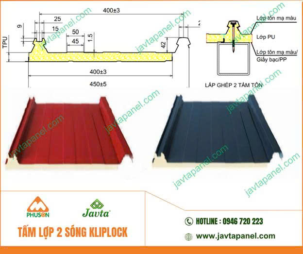 Tôn Lợp Mái 2 Sóng KLIPLOCK PU50 của PHÚ SƠN (JAVTA) là giải pháp toàn diện cho mọi công trình công nghiệp cao cấp.